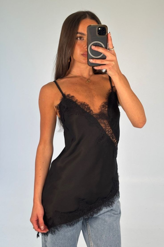 Шовковий топ з мереживом KC-A3363T400