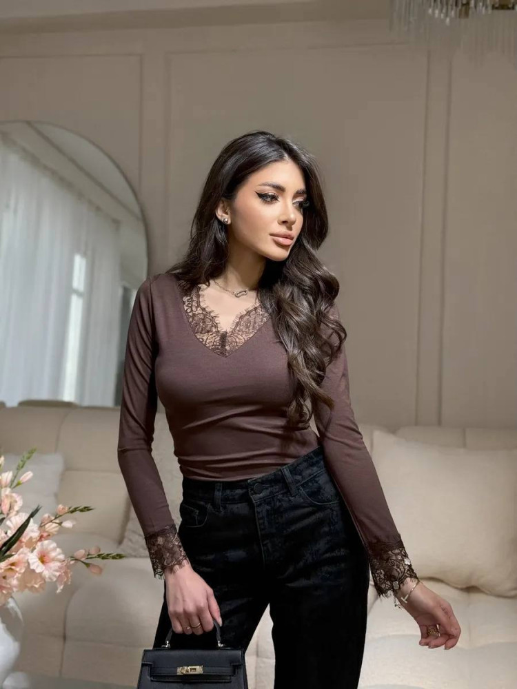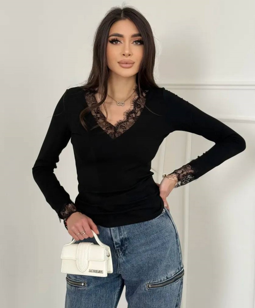 Лонгслів з мереживною обробкою KC-A0522T380