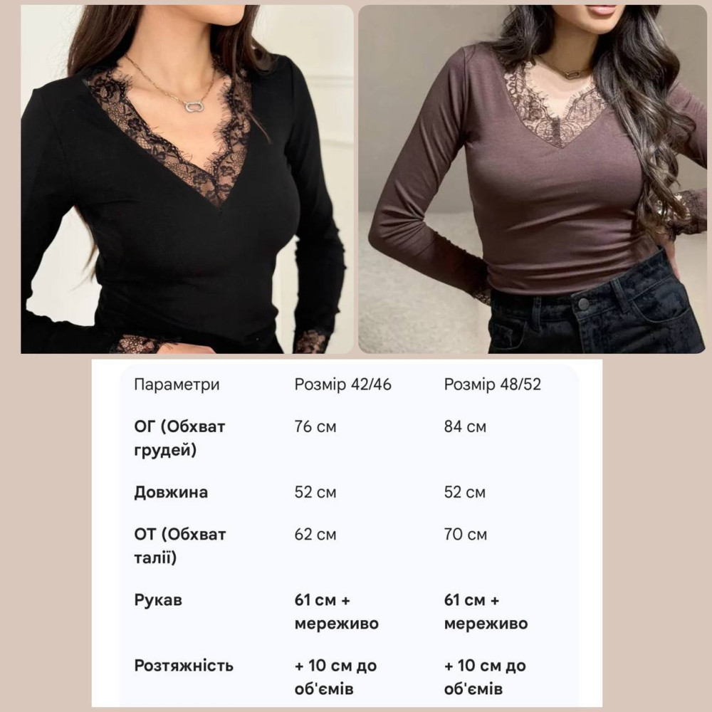 - Тканина: мікро дайвінг + обробка італійське мереживо