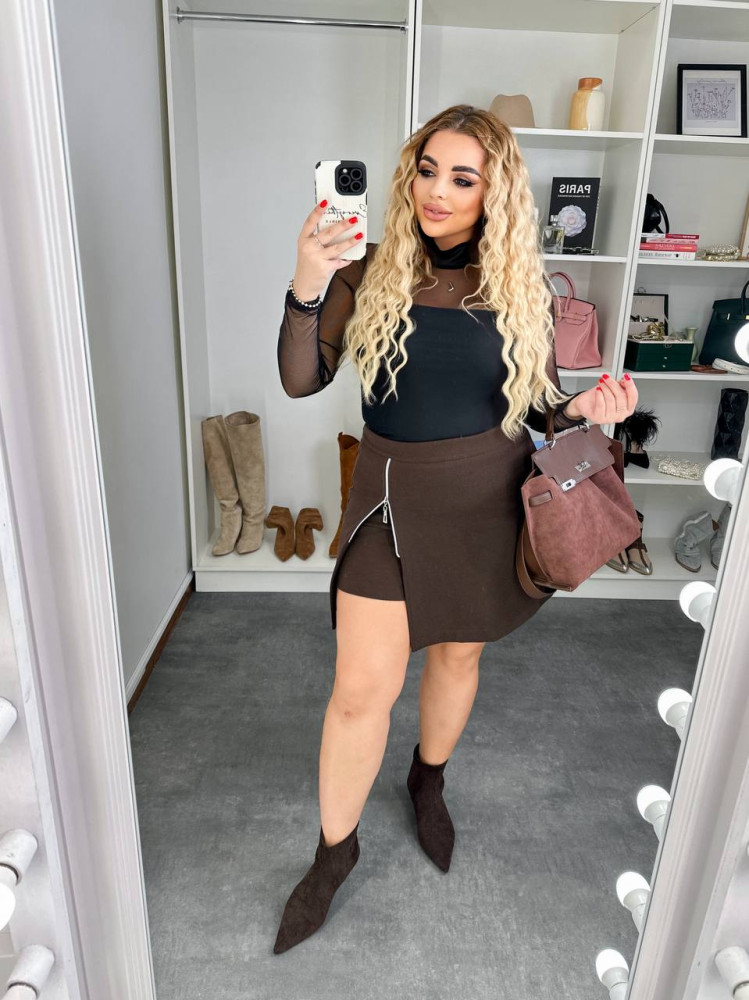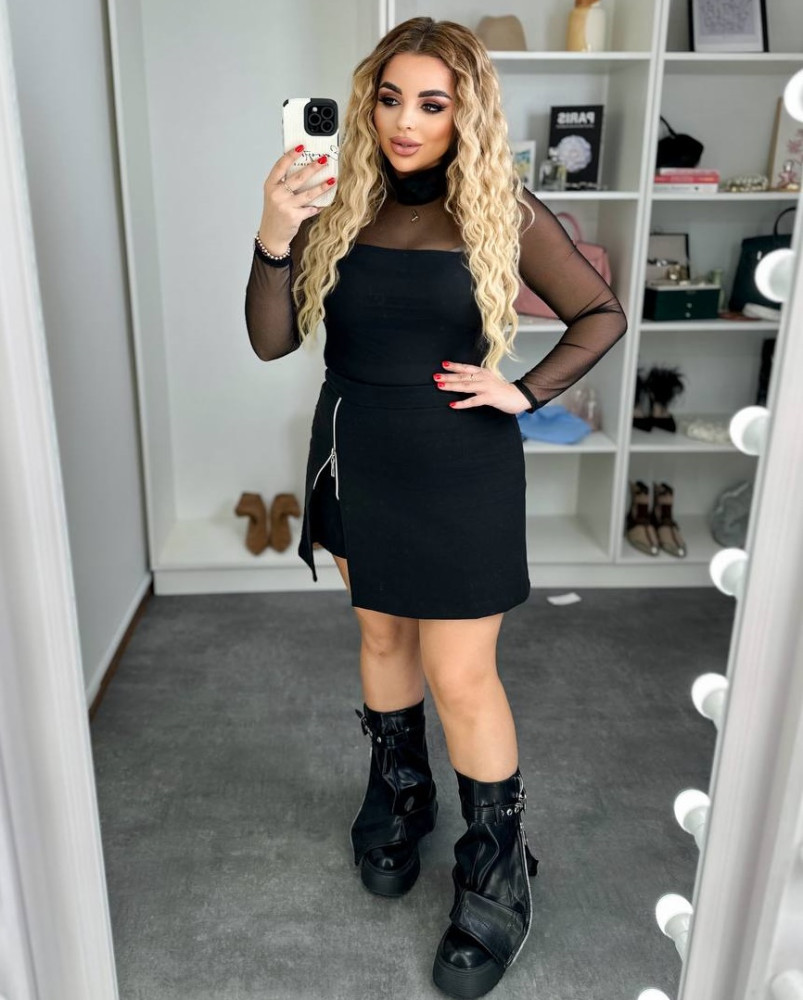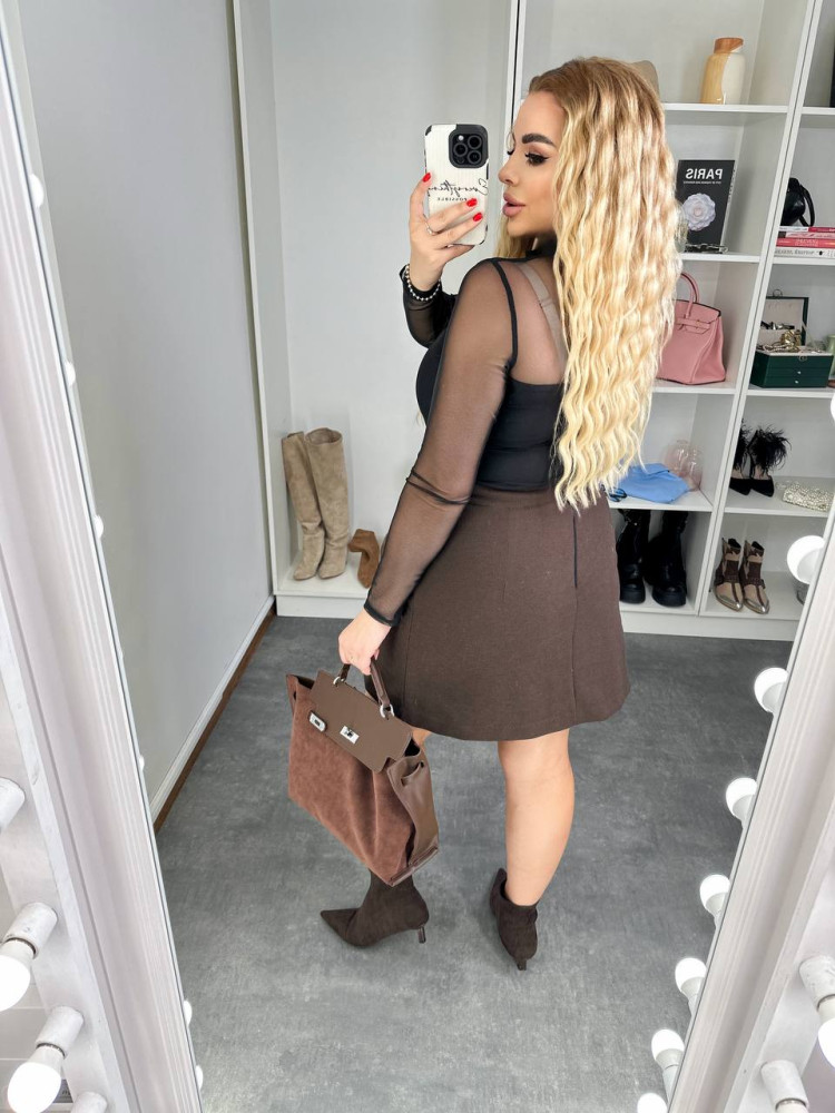 - Має легку розтяжність. Позаду — функціональна блискавка