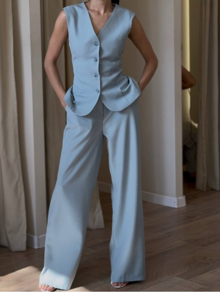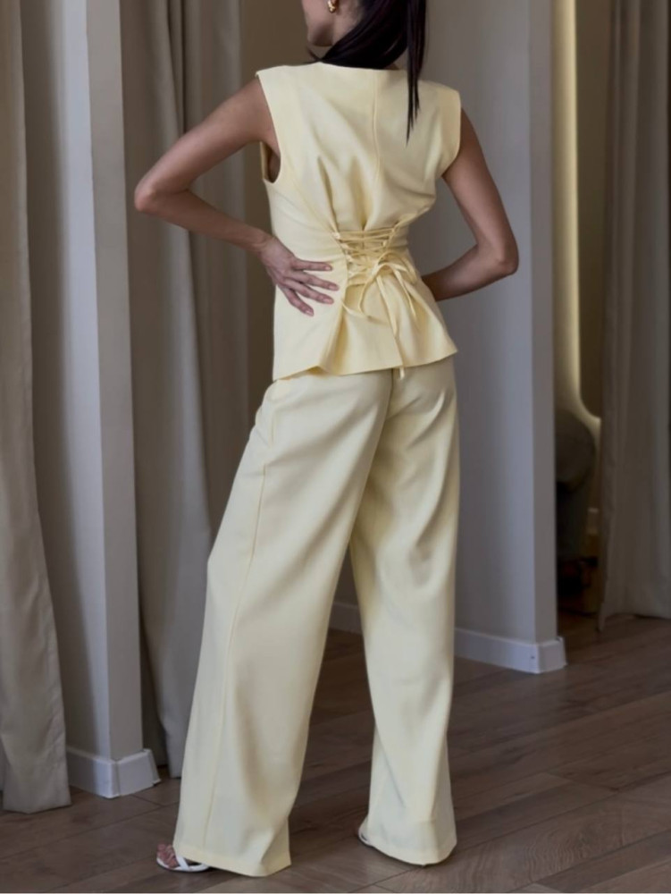 - Жилет застегивается на пуговицы по переду и регулируется завязками по спинке