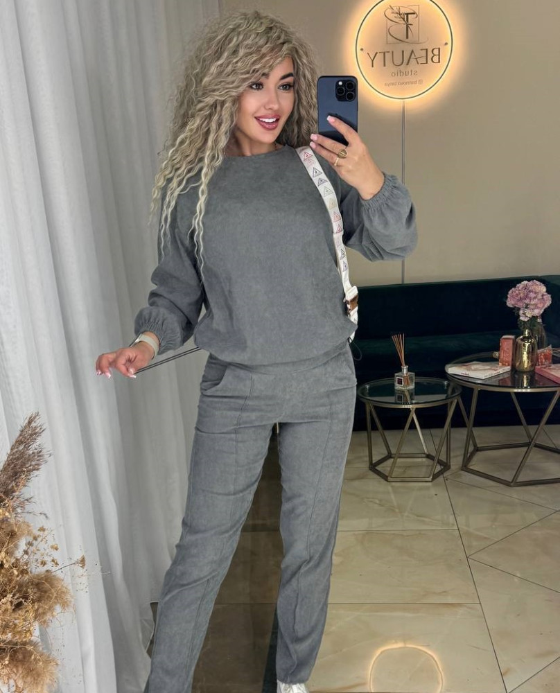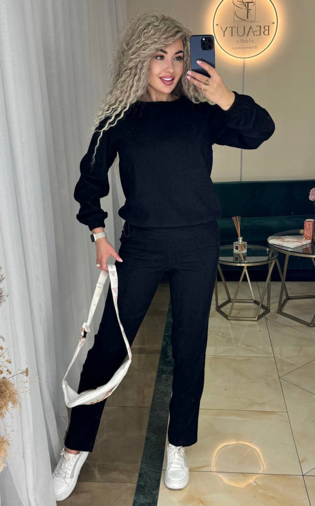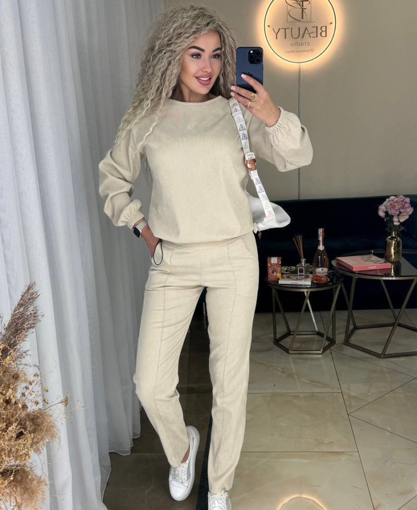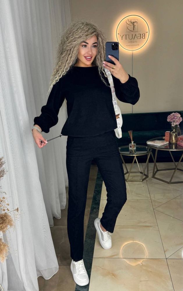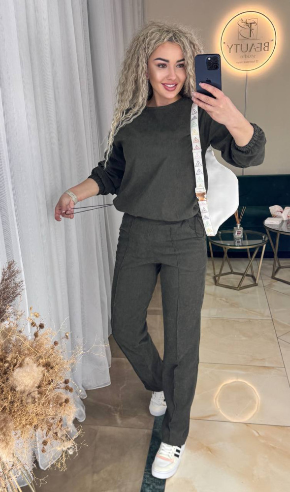 - Оверсайз свитшот на манжетах + прямые брюки с выточками
