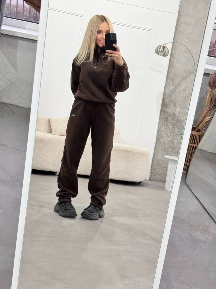 - Грудь: 108 см, Длина кофты: 55 см, Рукав: 70 см, Бедра: 102 см, Талия: 60–75 см, Длина брюк: 103 см
