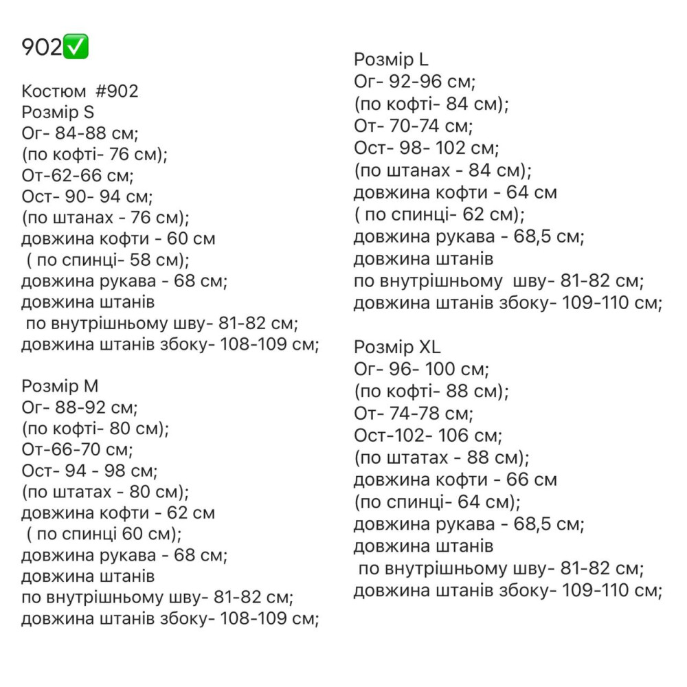 | XL | 42 | 48 | 94-98 | 74-78 | 102-106 |