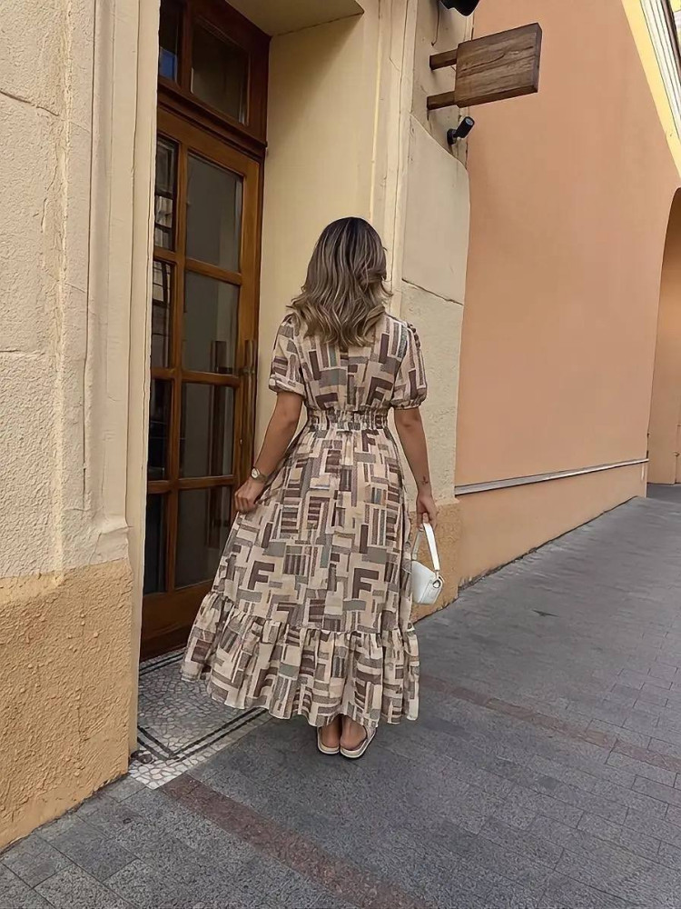- Размерная сетка платья с талией на резинке: