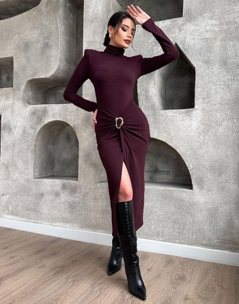 Платье гольф с разрезом по ножке YLM-A603T480