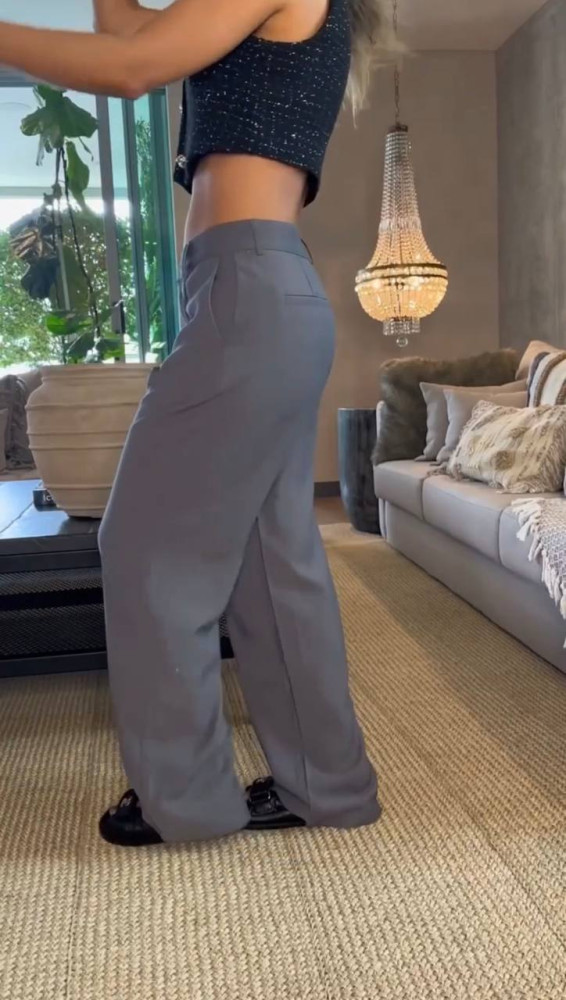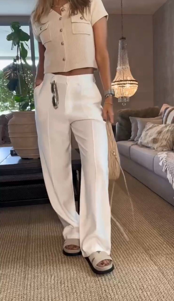 - Объем талии 82 см, Объем бедер 116 см, Длина 112 см, Ширина брюки 34 см (обхват бедра 68 см)