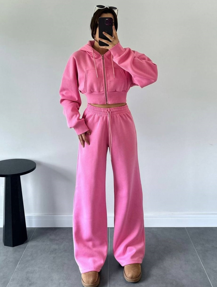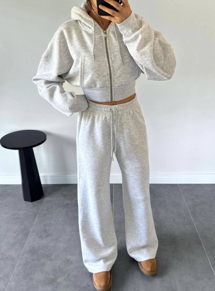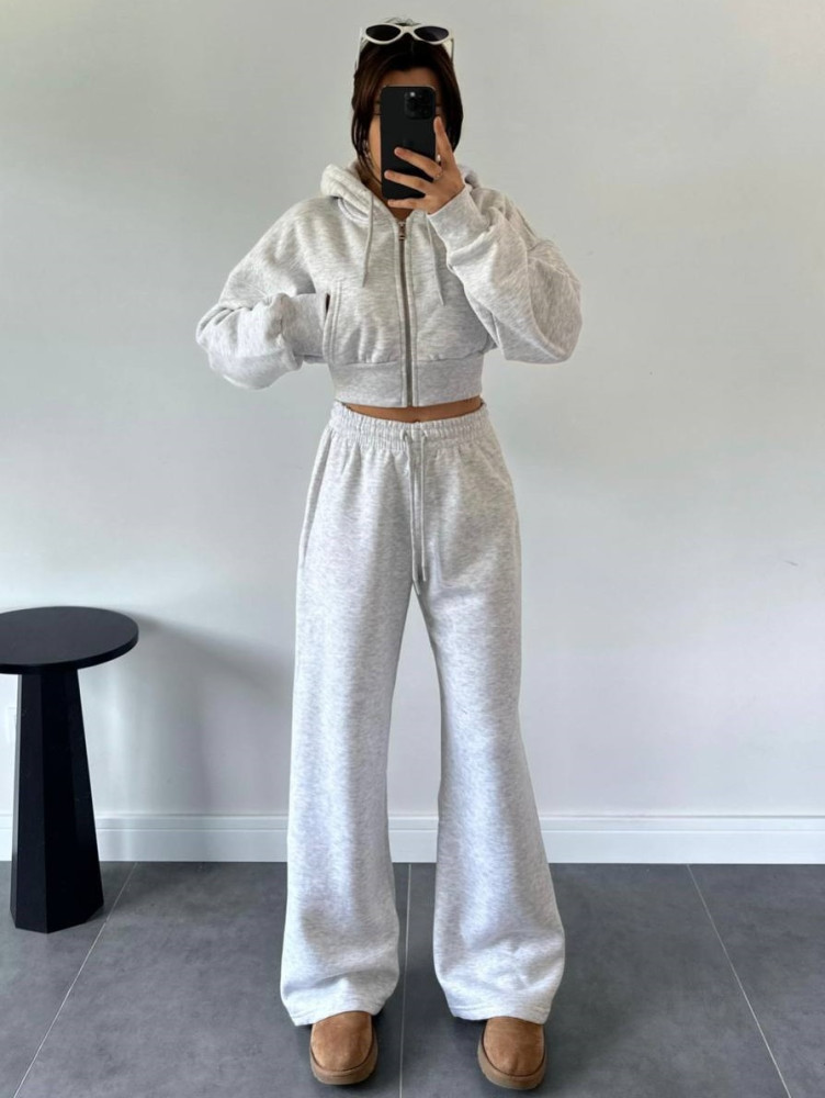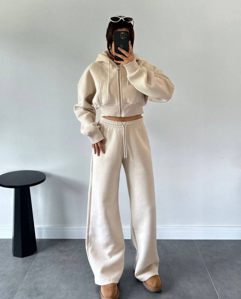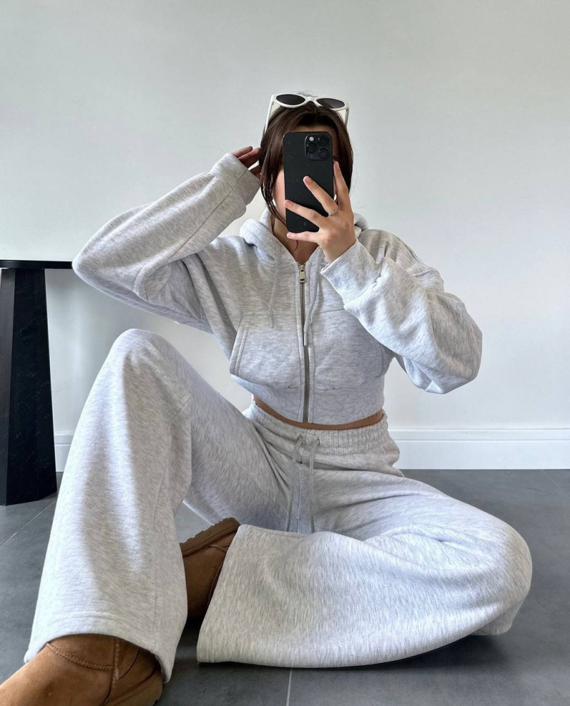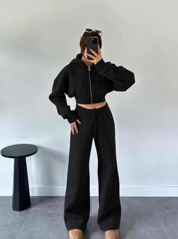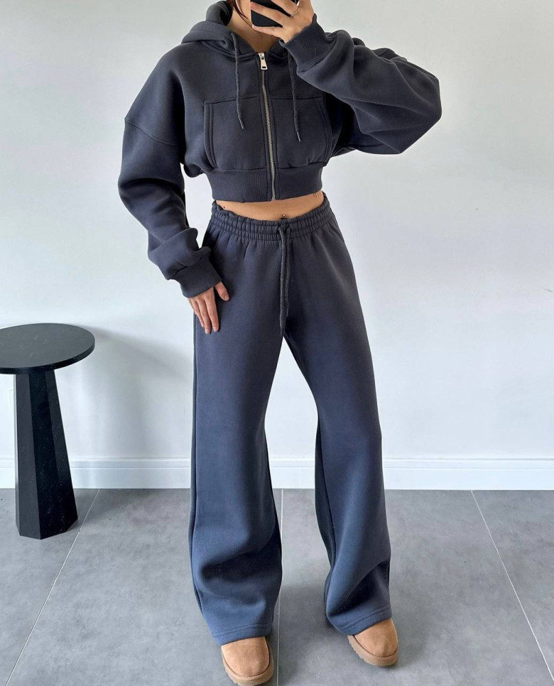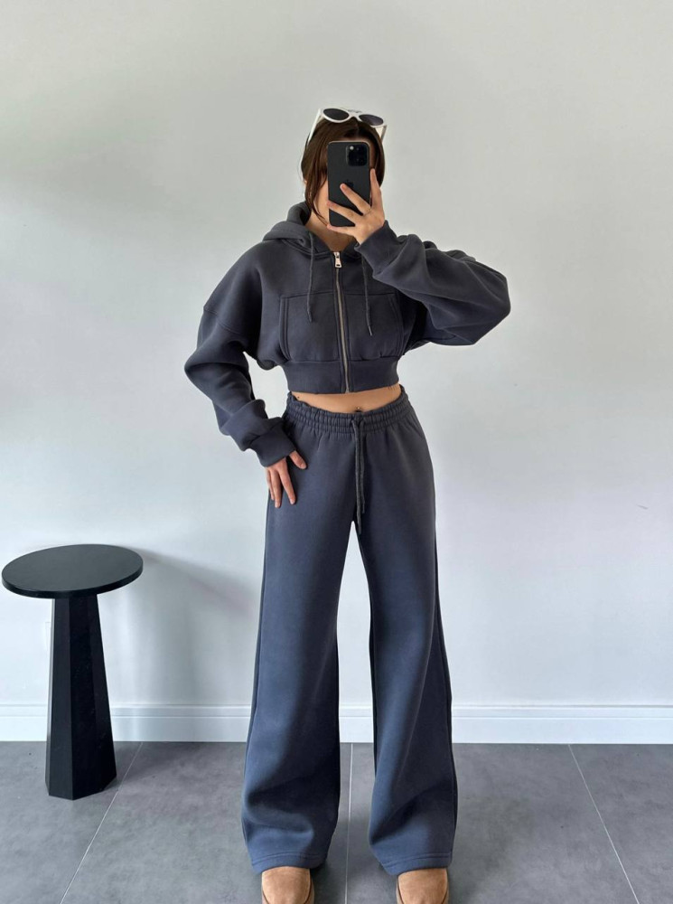 - Теплый костюм-укороченная кофта oversize+прямые брюки