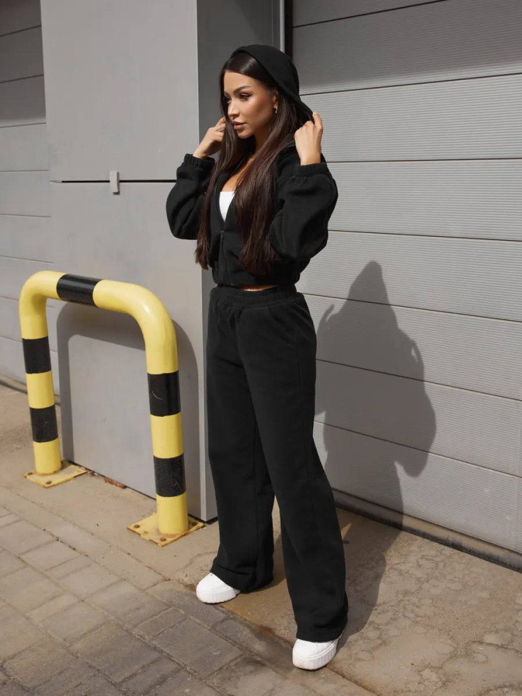 - Грудь: 124 см, Длина кофты: 56 см, Рукав: 72 см, Бедра: 116 см, Талия: 72–87 см, Длина брюк: 104 см
