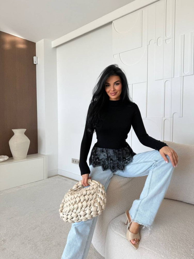 Лонгслив с кружевной баской AMU-A958T369