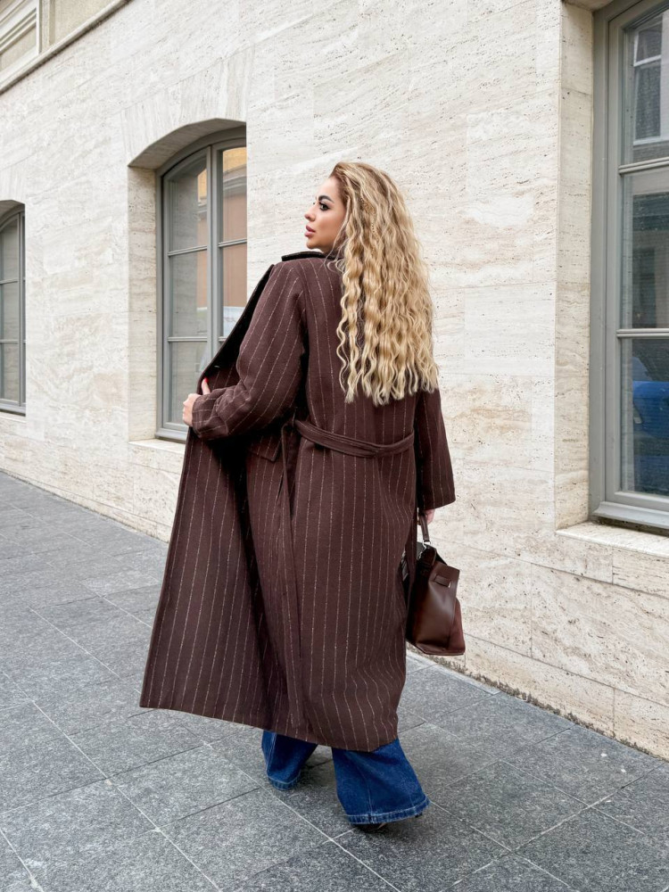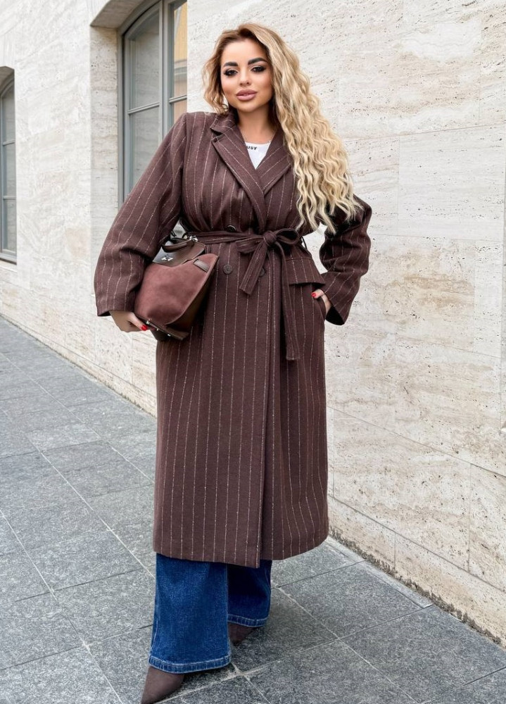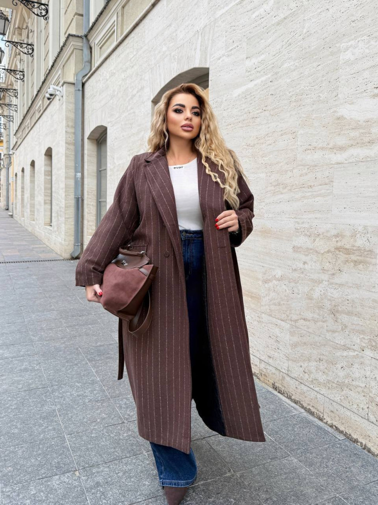 - Подкладка стеганая на синтепоне 100. Подплечники вшиты. Застежки – пуговицы. Длина изделия 124 см, длина рукава – 63см
