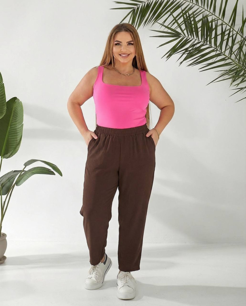 - Фасон: Брюки с карманами имеют свободный, немного укороченный крой (7/8 или полная длина в зависимости от роста)