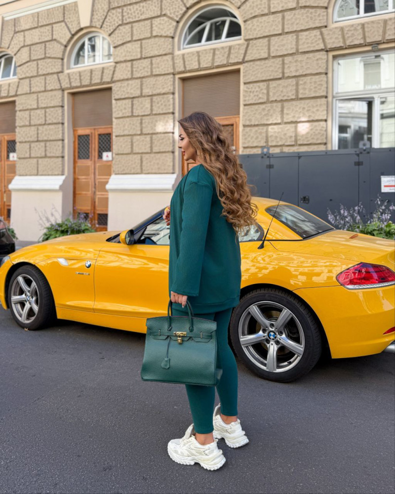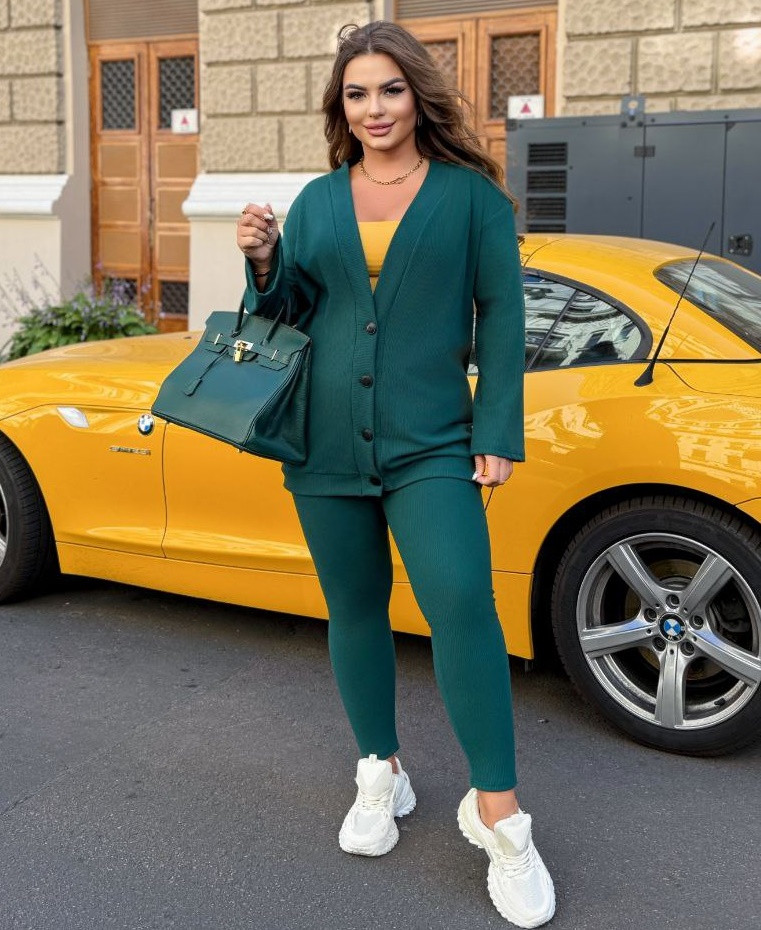 - Объем груди кофты – 114см, длина кофты – 77см, длина рукава кофты – 61см, объем талии –78(растягивается до 90см), объем бедер – 88см (растягивается 104см), длина лосин – 93см