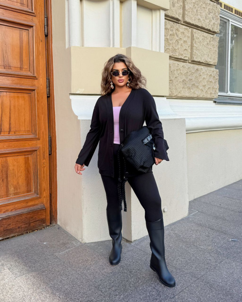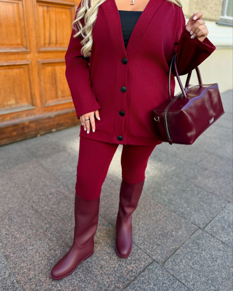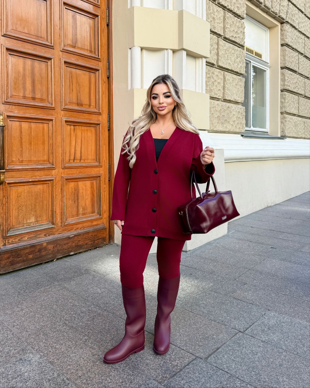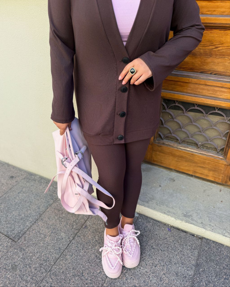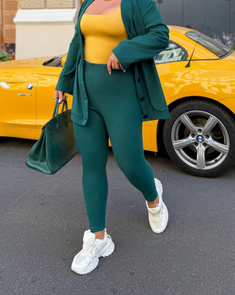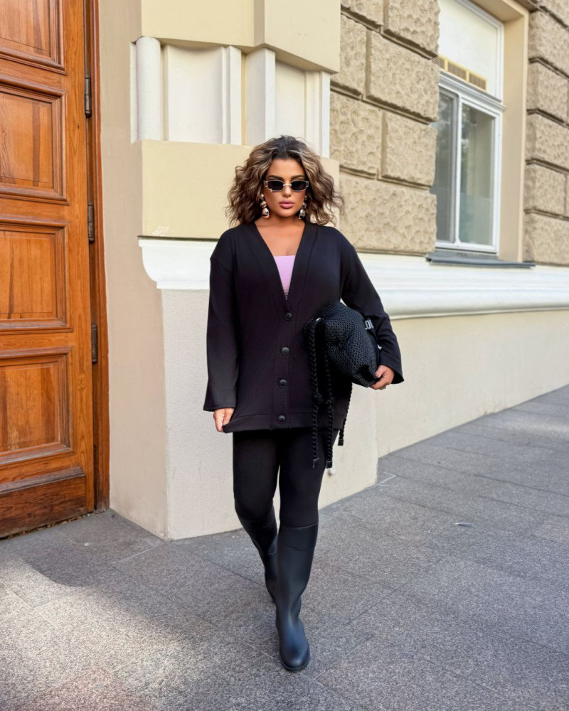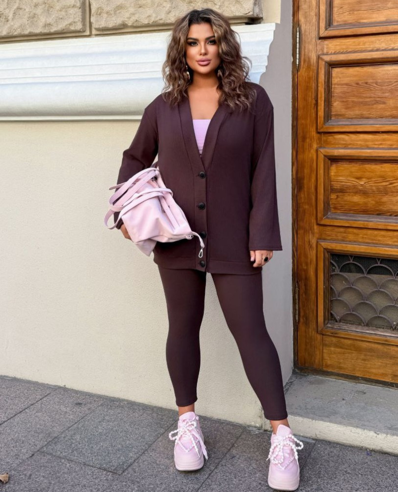 - Кофта удлиненная на функциональных пуговицах. Лосины без карманов на поясе резинка