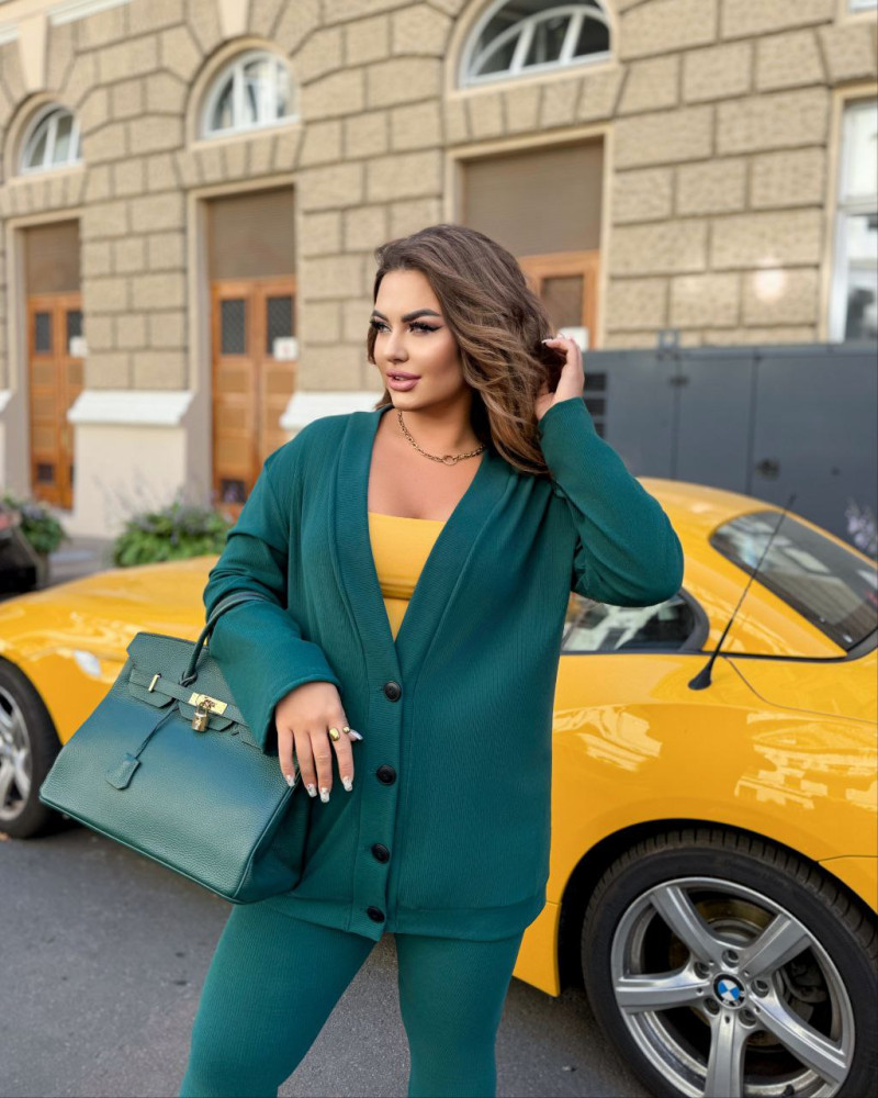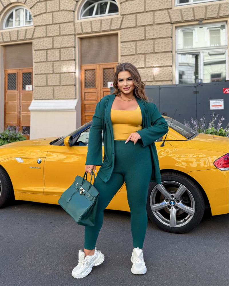 - Объем груди - 130см, длина кофты - 79см, длина рукава кофты - 62см, объем талии -94(растягивается до 106см), объем бедер - 104см (растягивается 120см), длина лосин - 95см