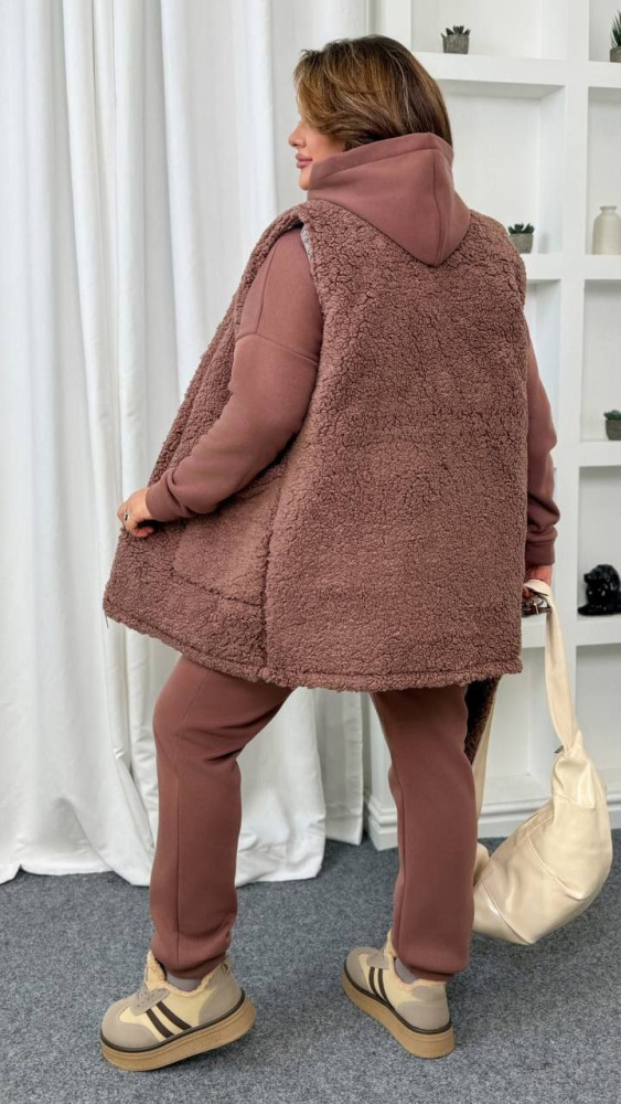 - Ткань жилета: мех теди, шелковистая подкладка, синтепон 150