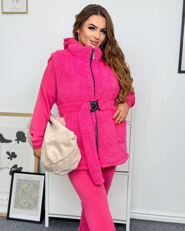 - Жилет на молнии, воротник стойка, с карманами, пояс в комплекте