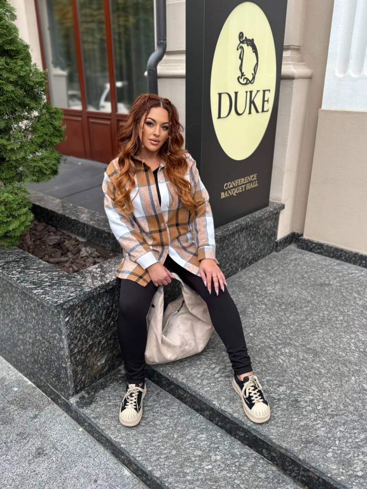 - Ткань костюма хорошо тянется. Талия на резинке. Рубашка почти не тянется