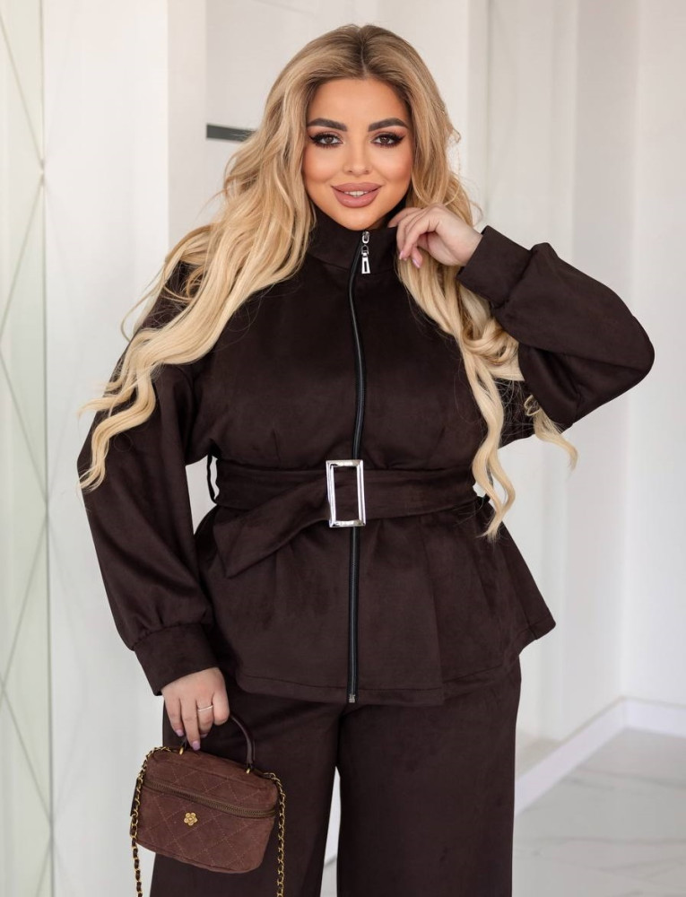 Замшевый жакет с поясом EY-A748T15B17