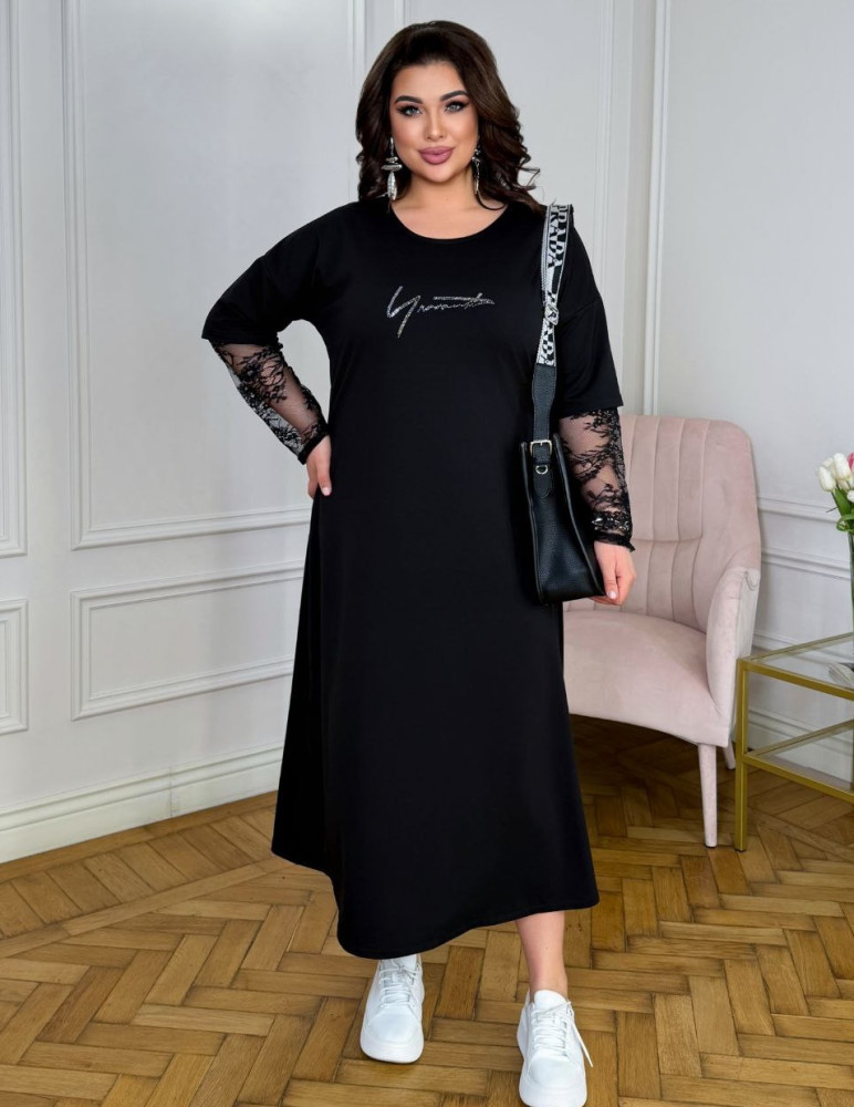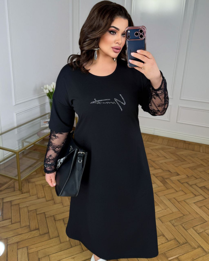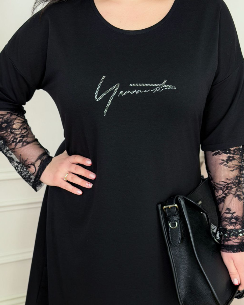 - Ткань: трикотаж двунитка, вшитый кружевной рукав и надпись из страз