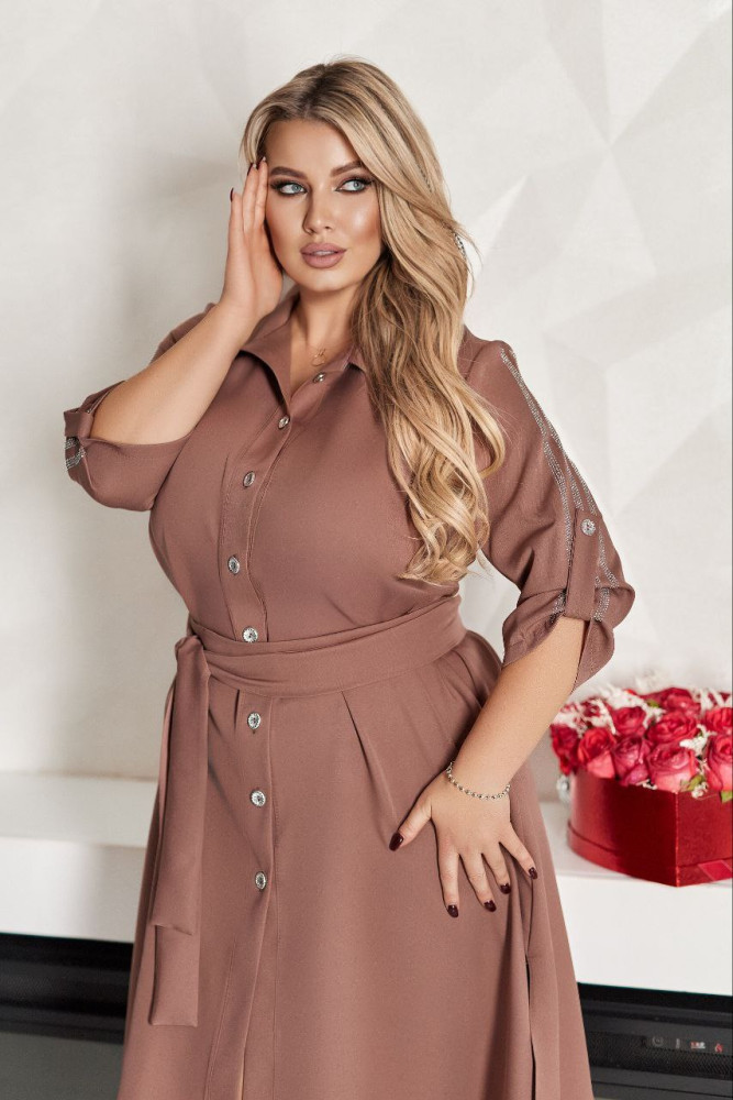 Платье-рубашка со стразами и поясом VOJ-A1044.1T720