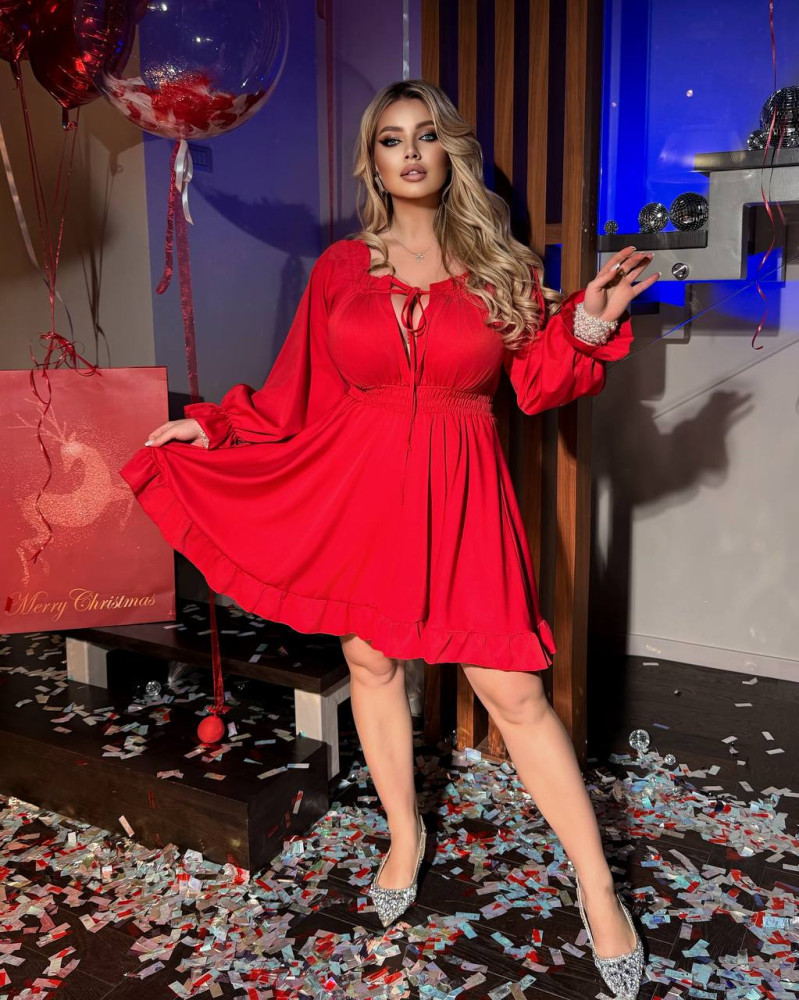 Платье с рюшами и сборкой по груди INS-A008T780