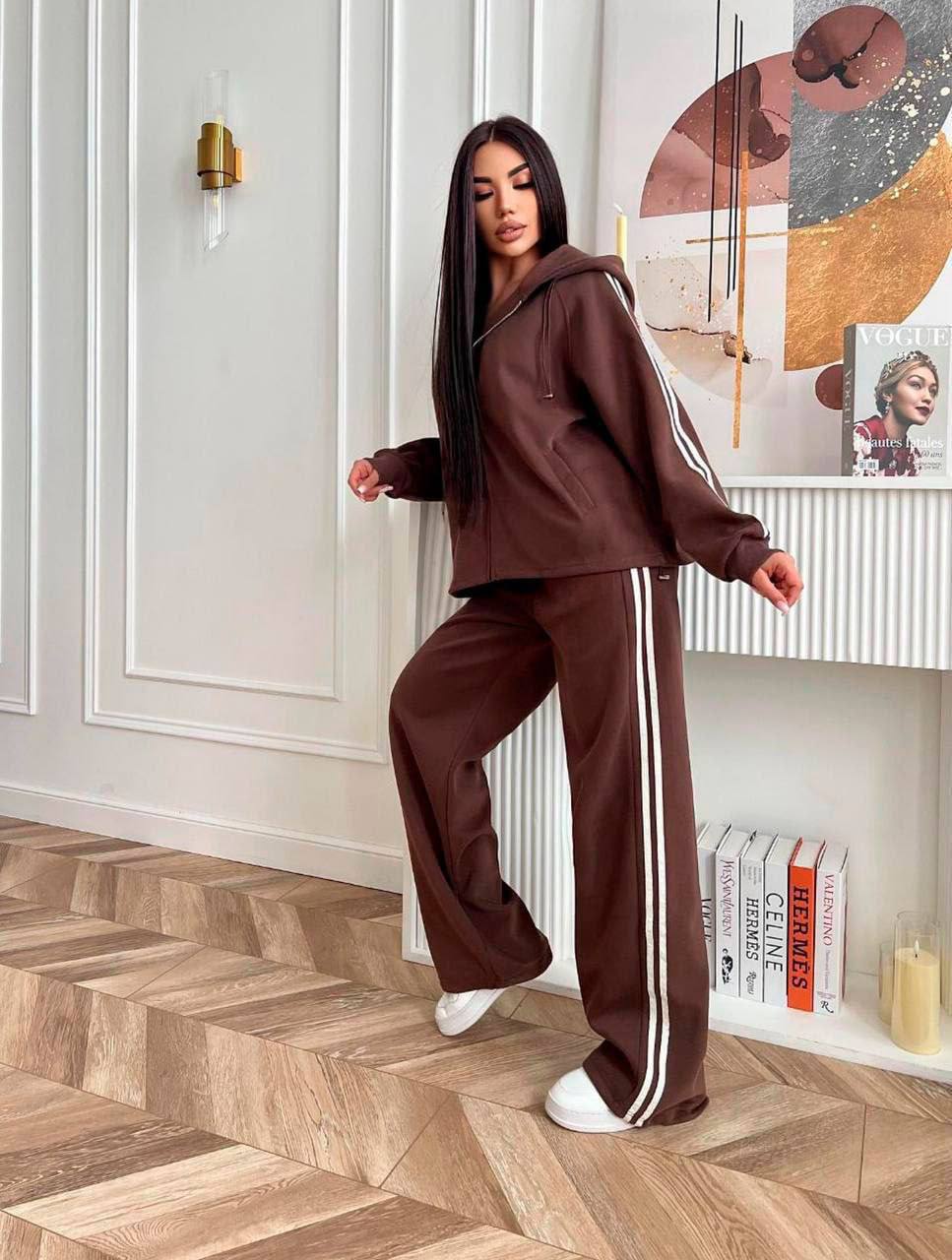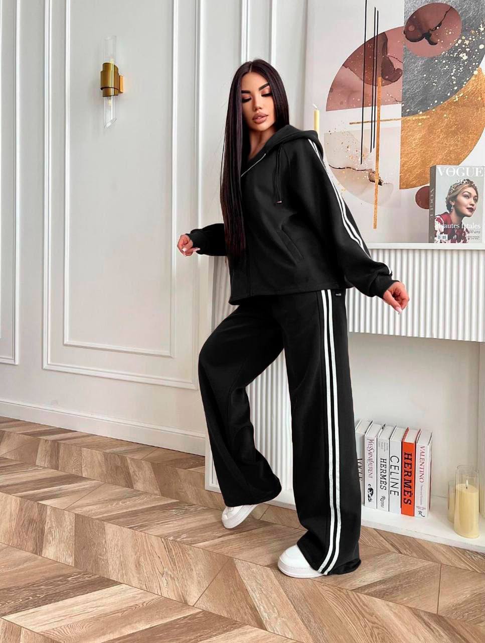 - Спортивка по низу регулируется затяжками. Палаццо с высокой посадкой и свободного кроя, низ регулируется затяжками.