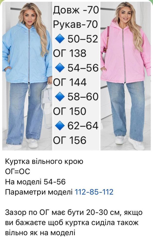 - Размеры: 50–52, 54–56, 58–60, 62–64