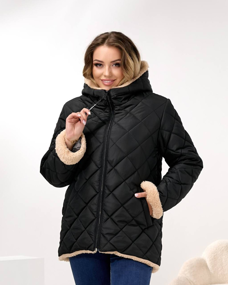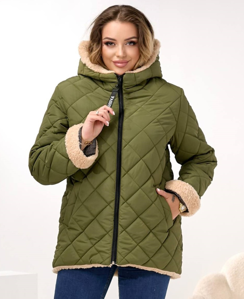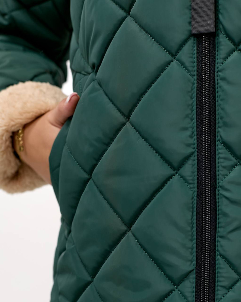 - Материал: не пропускающая влажность плащевая ткань «Канада», наполнитель силикон плотностью 150 г/м2 + пушной подклад