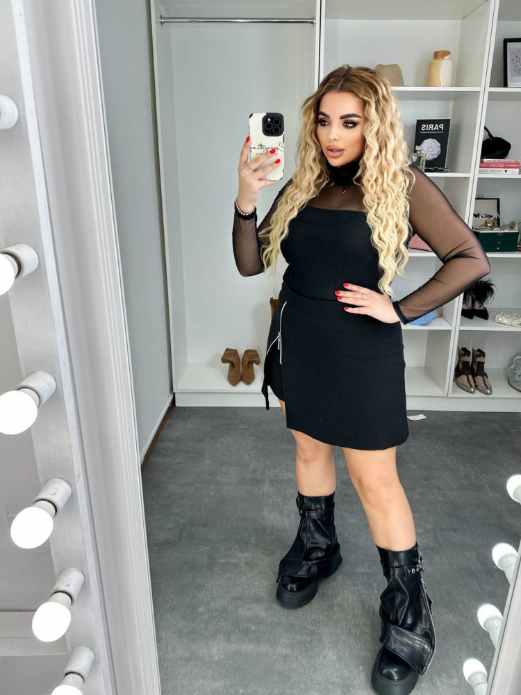 - Обладает легкой растяжимостью. Позади – функциональная молния